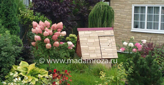 Ниже представлено фото из нашего сада, вот такой цвет у нас получился сам по себе, саженец прекрасно перезимовал свою первую не самую лучшую малоснежную зиму 2014, испытал на себе весенние заморозки в -11 градусов будучи уже с листьями и прекрасно цвел все лето до осени. Укрытие легкое: окучивание сухим торфом или землей, в холодных районах - лутрасил