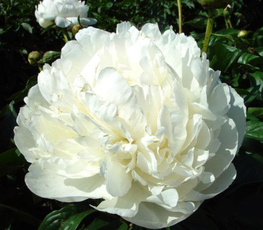Elsa Sass (Эльза Сасс. Цветок очень красивый, махровый, розовидный, кремово-белый, с крупными лепестками, приятный аромат. Листья очень декоративный, темно-зеленые, блестящие, прекрасно смотрятся на контрасте с большими нежными цветами (18см). Высота куста 70-90 см, очень поздний сорт) В НАЛИЧИИ: корень 3-5 почек - 1300 рублей